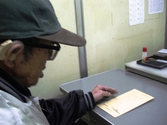 大きな荷物をしょってよろよろ歩いてくる“おじいちゃん”が1人。声をかけると案の定、「朝から何も食べてない、泊まる所もない」とのこと。「炊き出し」の残りを食べてもらって話を聞いたんですが、補聴器の電池が切れていてコミュニケーションがむずかしい〜。