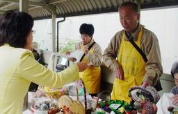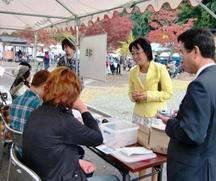 吉田さゆみさん、後野市議と一緒に、まず訪問したのは舞鶴共同作業所のバザー。