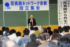 「反貧困ネットワーク」代表・「年越し派遣村」名誉村長でもある宇都宮健児弁護士が講演され、続いて、京田辺市の小学校の先生が「子どもの貧困」について、生活保護「生存権裁判」の松島松太郎さんや、シングルマザー、障害者団体などいろんな分野から“貧困”の告発がありました。